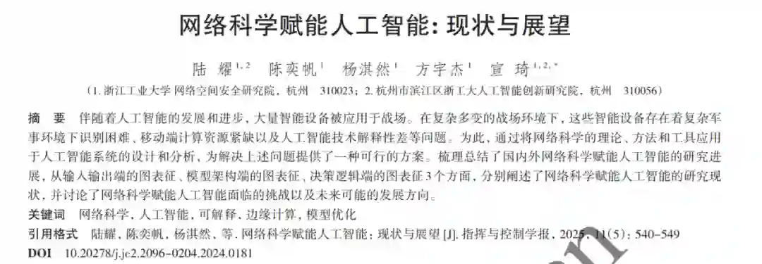伴随着人工智能的发展和进步,大量智能设备被应用于战场。在复杂多变的战场环境下,这些智能设备存在着复杂军 事环境下识别困难、移动端计算资源紧缺以及人工智能技术解释性差等问题。为此,通过将网络科学的理论、方法和工具应用 于人工智能系统的设计和分析,为解决上述问题提供了一种可行的方案。梳理总结了国内外网络科学赋能人工智能的研究进 展,从输入输出端的图表征、模型架构端的图表征、决策逻辑端的图表征3个方面,分别阐述了网络科学赋能人工智能的研究现 状,并讨论了网络科学赋能人工智能面临的挑战以及未来可能的发展方向。 https://www.jc2.org.cn/CN/abstract/abstract776.shtml