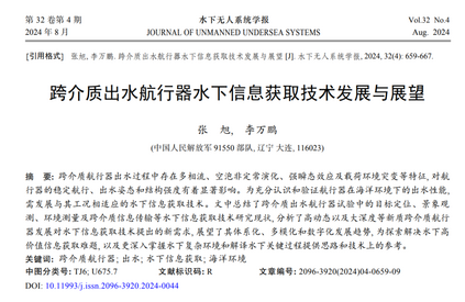 跨介质航行器出水过程中存在多相流、空泡非定常演化、强瞬态效应及载荷环境突变等特征, 对航 行器的稳定航行、出水姿态和结构强度有着显著影响。为充分认识和验证航行器在海洋环境下的出水性能, 需发展与其工况相适应的水下信息获取技术。文中总结了跨介质出水航行器试验中的目标定位、景象观 测、环境测量及跨介质信息传输等水下信息获取技术研究现状, 分析了高动态以及大深度等新质跨介质航行 器发展对水下信息获取技术提出的新需求, 展望了其体系化、多模化和数字化发展趋势, 为探索解决水下高 价值信息获取难题, 以及更深入掌握水下复杂环境和解译水下关键过程提供思路和技术上的参考。