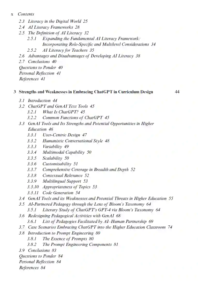 陈和Colloton的书是首批全面考察ChatGPT及生成式AI(GenAI)在高等教育中的使用和影响的著作之一。 自2022年11月以来,高等教育中的每一次讨论都涉及到ChatGPT及其对教学和学习各方面的影响。本书探讨了针对专业情境定制的AI素养的必要性,评估了将ChatGPT纳入课程设计的优势和劣势,并深入探讨了在GenAI时代评估方法的转变。作者介绍了六个评估重设计策略(SARPS)和一个AI评估集成框架,鼓励采用以学习者为中心的评估模型。探讨了制定精心设计的AI教育政策的必要性,以及在学术机构中制定政策蓝图的方法。对技术爱好者而言,本书深入讲解了GenAI背后的机制,从神经网络的历史到GenAI技术的最新进展和应用。