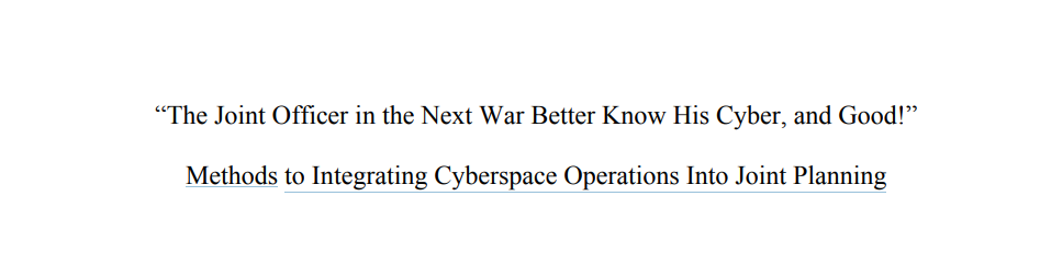 整个联合兵力的赛博空间战条令框架并未以综合方式处理赛博空间战。有些条令在整合赛博空间战方面相当彻底,如赛博空间战和多域作战条令,而有些条令,如 C2 和联合火力支援条令,则表现出不一致,造成了对如何使用赛博空间战的误解。