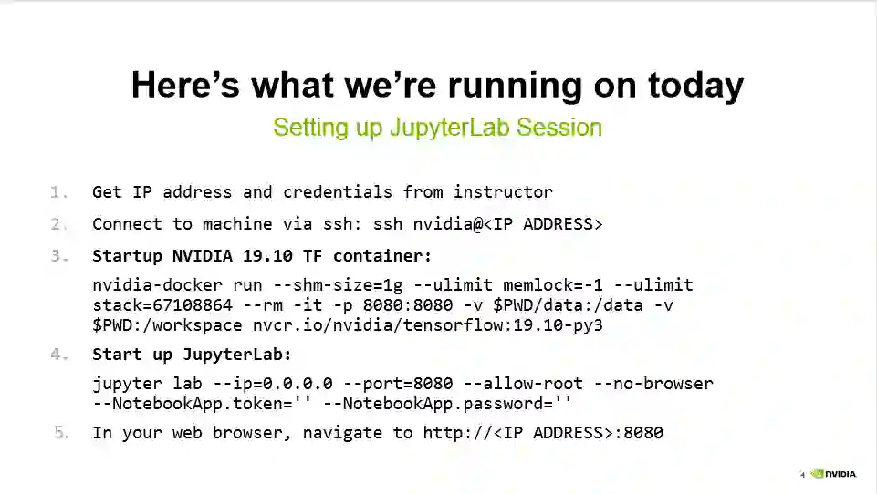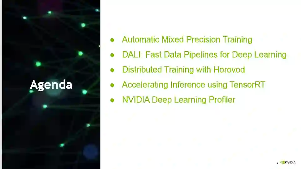 Maggie Zhang,Nathan Luehr,Josh Romero,Pooya Davoodi和Davide Onofrio深入研究了用于加速深度学习训练和推理的通用深度学习和机器学习工作负载的技术。 通过本教程将了解DALI如何消除现实应用中的I/O和数据处理瓶颈,以及自动混合精度(AMP)如何轻松地在Volta GPU上的训练性能提高3倍。 您将看到使用Horovod进行多GPU和多节点扩展的最佳实践。 他们使用深度学习探查器来可视化TensorFlow操作并确定优化机会。 本教程将教读者学习使用TensorRT(TRT)中的INT8量化来部署这些训练有素的模型,所有这些都将在TensorFlow框架的新型便捷API中进行。