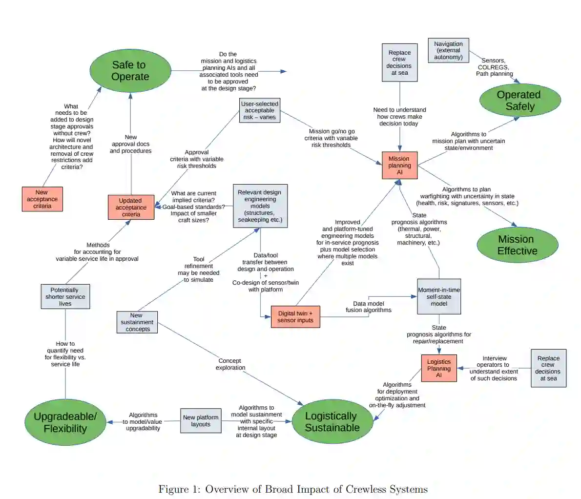 事实证明,使海事平台在海上执行数周至数月的长期任务时具有自主性,这与无船员的空中和地面车辆所面临的挑战根本不同。自我健康评估、任务规划和后勤考虑对于可能一次出海数周至数月的海洋船舶来说都是非常重要的。然而,目前人们对有船员的船只如何进行这种评估和任务规划还不是很了解,这使得对这一领域的算法的研究变得困难。