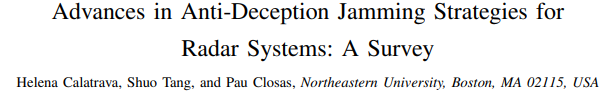 值得注意的是,只要干扰信号功率超过雷达检测阈值,即使低于TOI回波强度,仍可生成有效虚假目标。与噪声干扰机不同,欺骗干扰机无需在雷达信号全周期持续发射,其功率效率更高且系统重量更轻,隐蔽性优势也降低了被敌方系统探测的概率。然而,欺骗干扰机需具备高存储容量与灵敏度以实现雷达回波的精准跟踪与复制。深入理解欺骗攻击特征及处理策略,是发展先进电子反对抗(ECCM)技术、提升雷达抗干扰韧性的关键前提。本文聚焦抗欺骗干扰技术进展,应对日益复杂的电子攻击威胁。