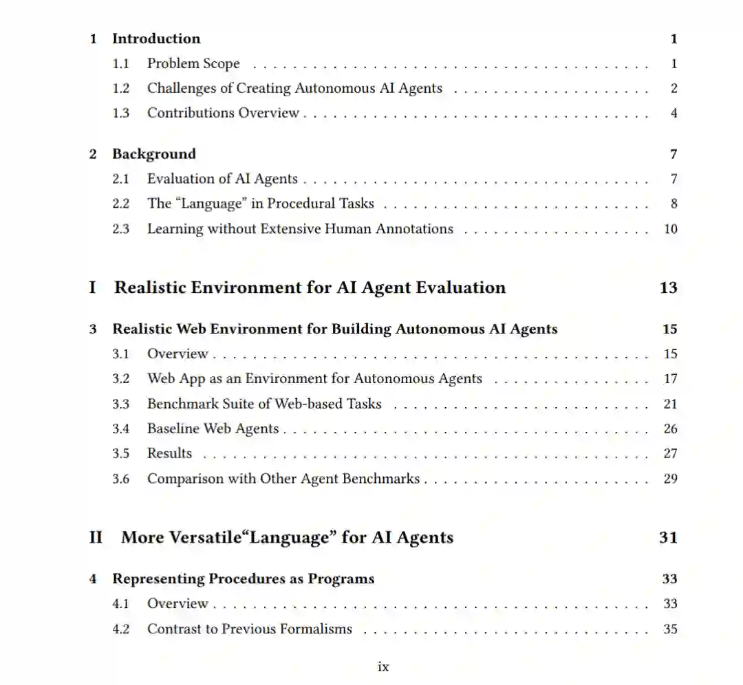 多年来,我的梦想是创建能够处理繁琐程序性任务的自主AI智能体(例如安排会议差旅),以便让我能够专注于创意工作。现代AI模型,尤其是像ChatGPT这样的大型语言模型(LLMs),使我们距离这个目标越来越近。但我的梦想已经实现了吗?本论文涵盖了2020年至2024年间的AI智能体研究,承认LLMs是广泛AI智能体应用中的一个关键但早期的步骤。尽管LLMs在处理定义明确的任务(例如撰写电子邮件)方面表现出色,但它们在处理需要智能体理解和应用“操作知识”的程序性任务时仍存在困难,特别是在动态交互中。当前的LLMs在复杂的程序性任务中表现不一致。本论文的目标是创建能够在不断变化的环境中以准确性、稳健性和可靠性执行程序性任务的AI智能体,围绕以下三个关键支柱展开。