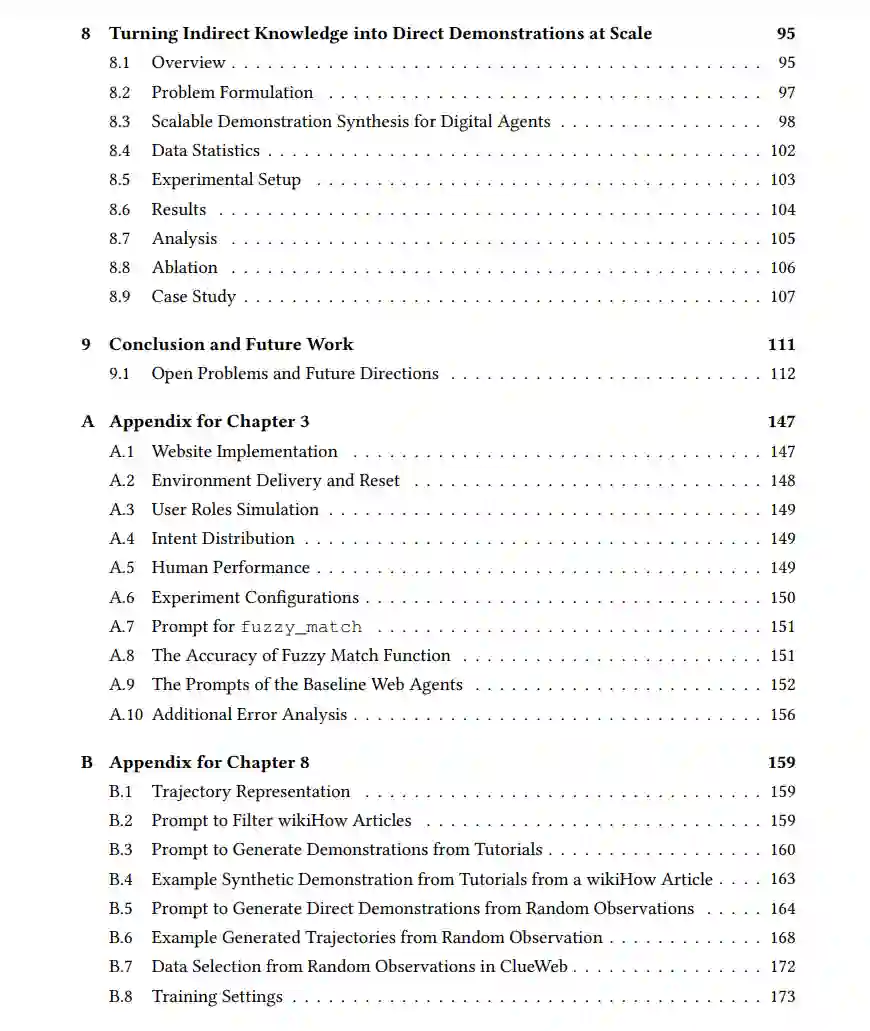 最后,我们开发了资源并设计了创新的方法,以使智能体能够适应陌生任务。对于LLMs而言,处理其训练语料库中未包含或稀疏包含的信息是一个特别大的挑战。因此,LLMs可以从访问外部知识中获益。我们研究了如何通过对人类编写的外部知识(例如手册)进行细致的任务分解,使其对AI智能体可理解。我们还提出了通过检索实现的知识增强执行的新机制,这使智能体能够通过参考外部知识以及通过数据合成来执行复杂任务。这两种方法绕过了对精确示范的依赖。