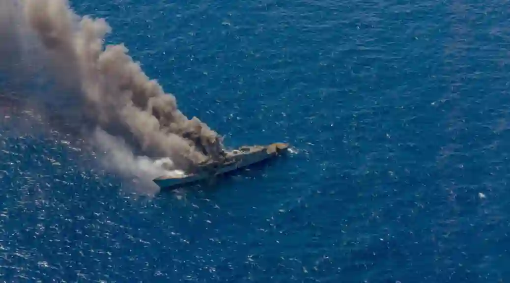 图:太平洋(2018年7月11日)--"杜威 "号导弹驱逐舰(DDG 105)在航行中用MK-234 "努尔卡 "诱饵发射系统发射了一枚电子诱饵弹。(美国海军二等大众传播专家 Devin M. Langer 拍摄/发布)