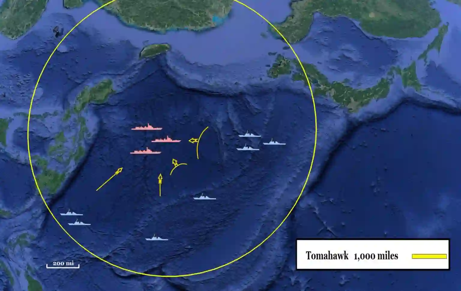 利用齐射模式的战术优势的能力可能是美国部署具有反舰能力的战斧导弹变型后对大国的关键优势之一,前提是大国没有开发出类似的武器。"战斧"导弹的射程特别远,这使其在通过各种模式和沿许多航路点进行机动时具有极大的灵活性。更远的射程还提高了导弹从虚假接触的欺骗中恢复的能力,并扩大了对真实目标的搜索范围。这些能力因齐射模式的另一个维度--海上滑翔攻击与高空俯冲攻击--而被放大。