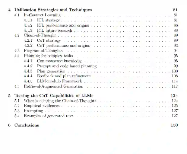 本文的目标有两个。首先,我们旨在提供关于LLM及其应用的深入综述,从其发展、预训练策略和架构变体的基础概述开始。这包括对从早期语言模型到如BERT、GPT、LLaMA等LLM复杂架构的演进进行考察。特别地,我们探讨了扩展规律的概念,这对于理解LLM的规模和复杂性如何影响其性能和能力,以及构建日益庞大和强大的模型所涉及的权衡和挑战至关重要。我们还将研究它们在各个领域的应用,如医疗、金融、教育、法律和科学研究。每个领域都有独特的挑战和机会,突出展示了LLM的多样性和适应性。例如,在医疗领域,LLM在辅助临床决策方面展现出了潜力,而在金融领域,它们则被用于情感分析和市场预测等任务。本文的第二个目标是深入探讨使LLM能够执行以往被认为机器学习系统无法完成的任务的机制。特别地,我们将尝试回答一些根本性问题。这些模型是如何学习和在任务及领域间泛化的?这些新兴能力是什么,它们如何被激发出来?哪些因素有助于它们的发展(例如模型规模、数据、架构等)?这些模型的固有局限性是什么,又该如何应对?因此,本研究的核心动机是调查LLM的当前能力和边界,重点关注它们在自我规划和执行任务方面的泛化能力。