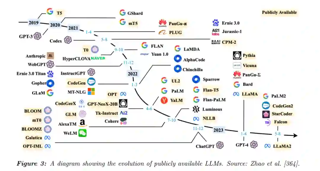 LLMs的发展得益于一些著名模型家族的出现,每个家族都有其独特的架构和能力。这些模型家族在推动语言处理和理解边界方面发挥了关键作用。