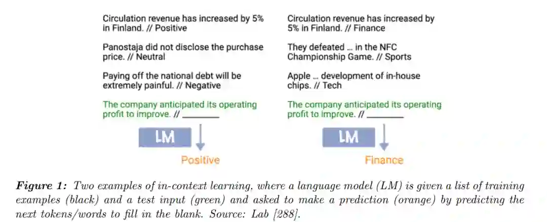 上下文学习(ICL)是一种独特的提示技术,使LLMs能够从提示中提供的示例中学习,从而在不显式梯度更新的情况下处理新任务。ICL策略包括演示设计、提示工程和选择适当的评分函数。
