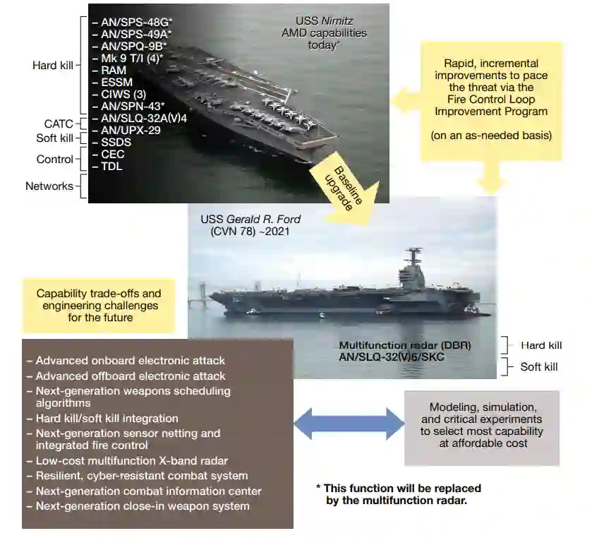 图3. 计划中的航空母舰SSDS作战系统的演变和潜在能力权衡的例子。(两栖舰,也有SSDS作战系统,也在进行相关的改进和能力权衡)。CATC,航母空中交通控制。