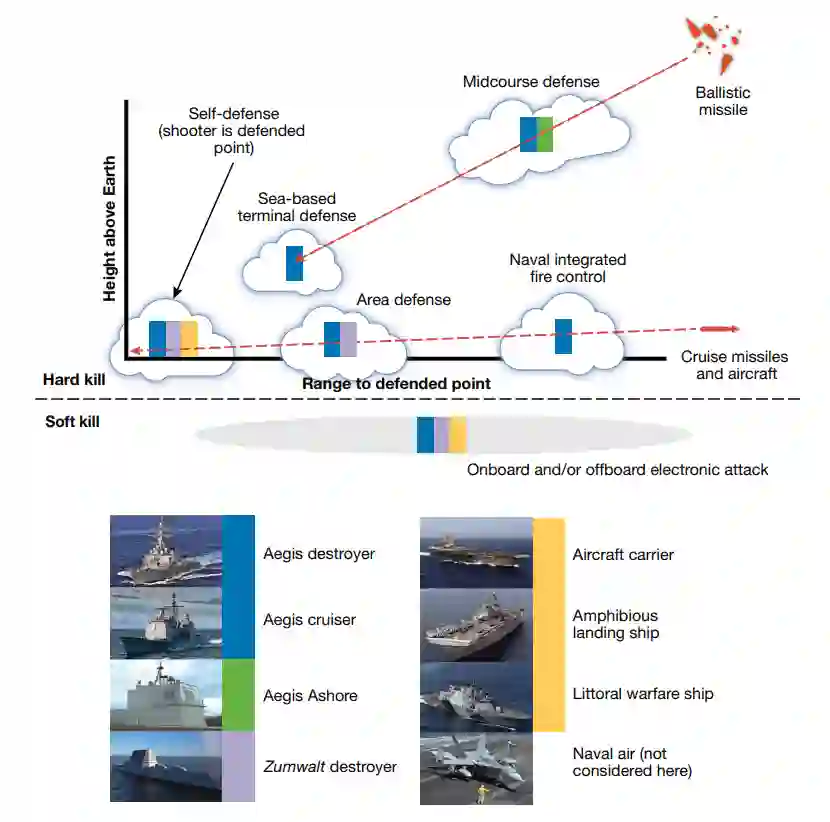 图1. 不同作战系统的防空和导弹防御能力的比较。(顶部的图表未按比例绘制)。