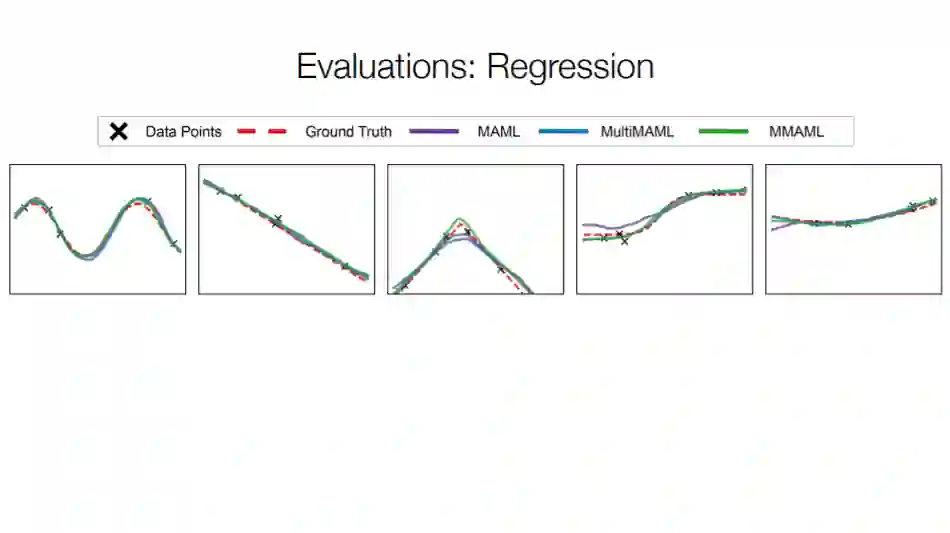 模型不可知元学习者的目标是从相似的任务中获取元学习参数,以适应分布相同但梯度更新较少的新任务。由于模型选择的灵活性,这些框架在诸如少镜头图像分类和增强学习等多个领域表现出了良好的性能。然而,此类框架的一个重要限制是,它们寻求在整个任务分布中共享的公共初始化,这极大地限制了它们能够学习的任务分布的多样性。在本文中,我们增强了MAML的能力,以识别从多模式任务分布中采样的任务模式,并通过梯度更新快速适应。具体来说,我们提出了一个多模态MAML框架,该框架能够根据所识别的模式调整其元学习先验参数,从而实现更高效的快速适应。我们在一组不同的少镜头学习任务上对所提出的模型进行评估,包括回归、图像分类和强化学习。结果不仅证明了我们的模型在调整元学习先验以响应任务特征方面的有效性,而且表明了多模态分布的训练比单模态训练有更好的效果。