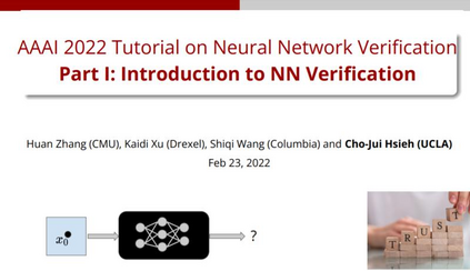 神经网络已经成为现代人工智能的重要组成部分。尽管如此,它们通常都是黑盒,它们的行为可能出人意料,并产生出人意料的错误结果,比如对抗性的例子。在本教程中,我们将介绍神经网络验证问题,其目的是正式保证神经网络的特性,如鲁棒性、安全性和正确性。我们的教程涵盖了验证问题的理论基础和最先进算法的介绍。此外,我们还将为用户友好的神经网络验证工具箱提供实践编码教程,允许从业者轻松地将正式的验证技术应用到他们的定制应用中。