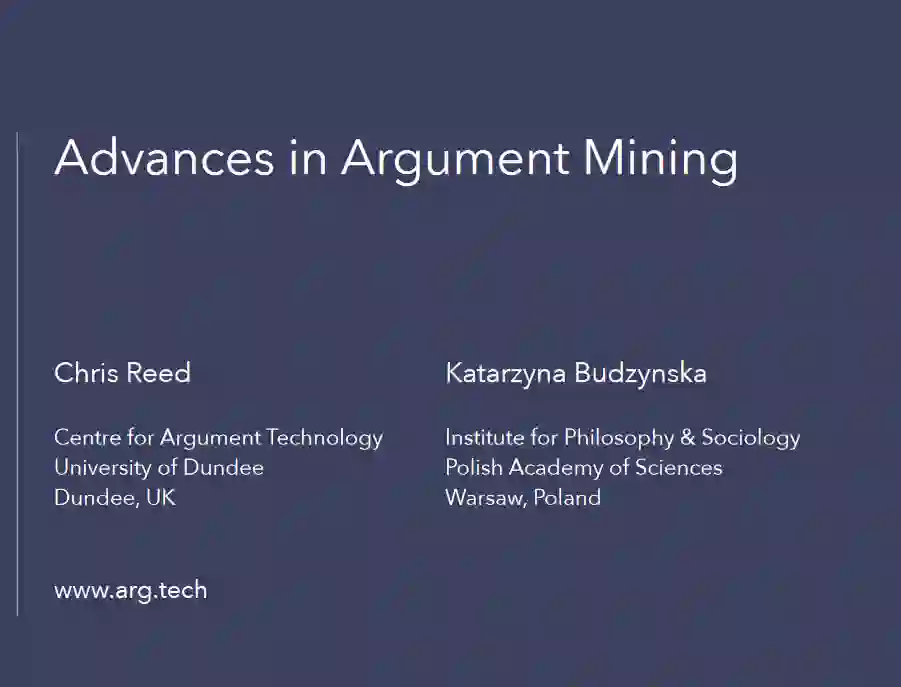 摘要: 本课程旨在向学生介绍一个令人兴奋和充满活力的领域,这个领域在过去36个月里取得了显著的发展。论点挖掘建立在观点挖掘、情绪分析和相关任务的基础上,不仅自动提取人们的想法,还自动提取他们持有自己观点的原因。仅仅五年前,它还远远超出了最先进的技术水平,现在已经有数百篇关于这一主题的论文和数百万美元的商业和研究投资。本教程综合介绍了过去三年该领域的主要进展。