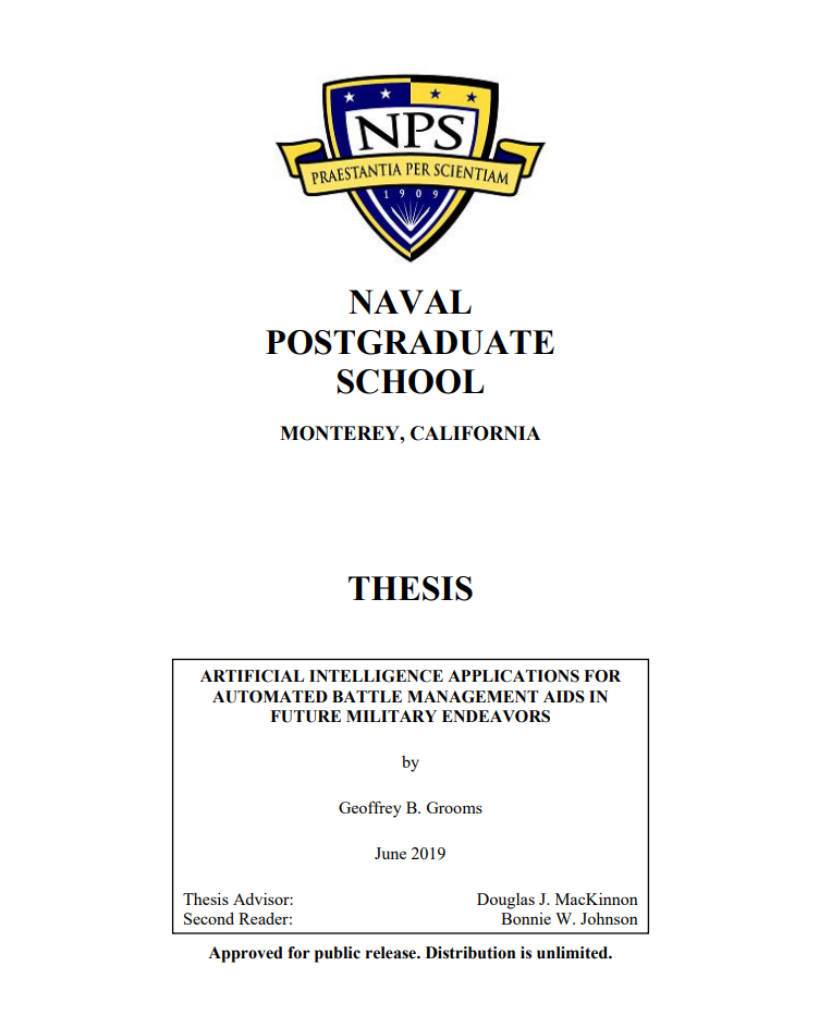 这篇论文试图研究能够改善复杂军事战术环境中决策的人工智能(AI)技术。战术环境在威胁、事件的节奏、突发或意外事件的因素、战斗空间意识的限制以及潜在的致命后果方面可能变得非常复杂。这种类型的环境对战术作战人员来说是一个极具挑战性的决策空间。战术决策任务在识别决策选项、权衡众多选项的相对价值、计算选项的预测成功率以及在极短的时间内执行这些任务方面迅速超越了人类的认知能力。海军已经确定需要开发自动战斗管理辅助工具(ABMA)来支持人类决策者。这个概念是让ABMA处理大量的数据来发展战斗空间知识和意识,并确定战争资源和行动方案的优先次序。人工智能方法的最新发展表明,它有望成为ABMAs支持战术决策的重要推动者。本论文研究人工智能的方法,目的是确定在战术决策领域的具体应用。