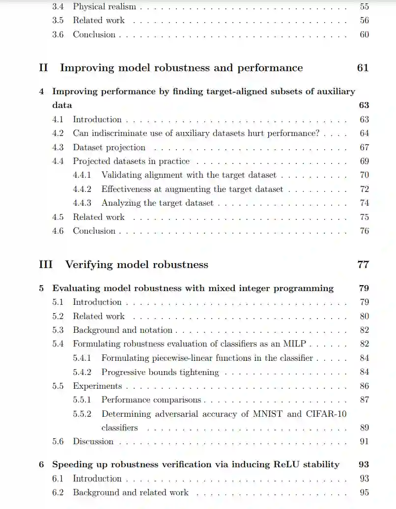 机器学习模型在面对分布变化时很脆弱,这使得它们在现实世界的部署中很难依赖。这促使开发方法,使我们能够检测和减轻这种模型的脆弱性,以及验证我们的模型确实满足期望的鲁棒性保证。本文提出了一套工具,帮助我们检测模型漏洞和偏差。该集合包括一套新的数据集,使我们能够更细粒度地了解模型对背景的依赖。另一方面,它涉及3DB,一个利用逼真模拟的框架,以探测模型对更多样化分布变化的脆弱性。除了识别这些漏洞外,还讨论了可以使模型对分布变化更鲁棒的干预措施,包括使用更多的训练数据。正如所证明的,不加区分地使用更多的辅助数据并不总是有益的,因此提出了数据集投影,一种选择要使用的"正确"辅助数据的方法。展示了如何有效和形式化地验证所提出模型对研究最充分的分布漂移类型之一是鲁棒的:逐像素对抗性扰动。