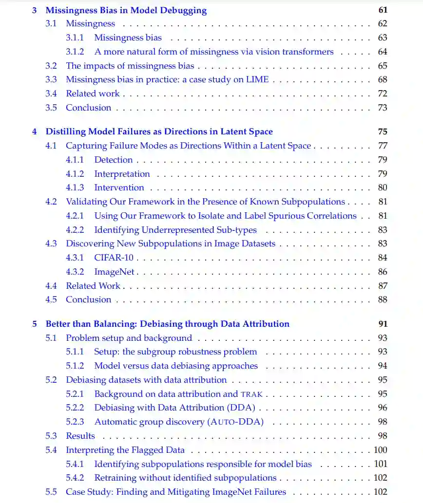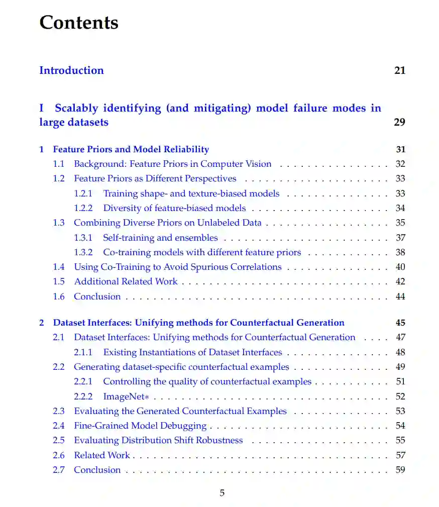 在第一个推动力中,我们开发了技术以揭示模型错误的有意义模式,特别是在手动探索代价过高的情况下。这包括建立一个生成反事实图像以调试模型行为的框架,以及引入一种自动识别失败模式的技术,通过将它们提炼为潜空间中的方向。我们还提出了一种基于数据的方法来从源头上缓解这些失败,通过隔离驱动目标偏见的训练示例来缓解这些失败。