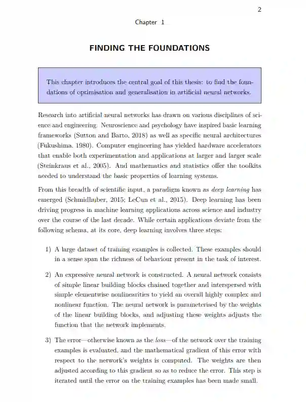 本文的目标是发展人工神经网络学习的优化和泛化理论基础。这篇论文涉及两个核心问题。给定训练数据和网络架构:1)哪种权重设置对未见数据的泛化效果最好,为什么?2)应该使用什么优化器来恢复这个权重设置?