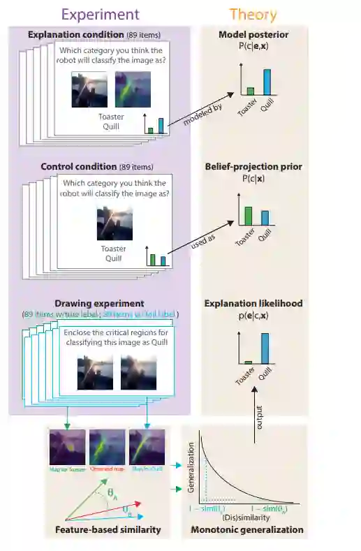 可解释人工智能(XAI)的目标是生成人类可解释的解释,但目前还没有计算精确的理论来解释人类如何解释人工智能生成的解释。理论的缺乏意味着XAI的验证必须在个案的基础上进行实证,这阻碍了XAI系统的理论建设。我们提出了一个关于人类如何从显著图(XAI解释的最常见形式)中得出结论的心理学理论,这首次允许在解释的条件下精确预测被解释推理。我们的理论假设,在缺乏解释的情况下,人类期望人工智能做出与自己类似的决定,他们通过与自己给出的解释进行比较来解释一种解释。比较是由认知科学中的经典理论——相似空间中的Shepard普遍概化定律形式化的。一项预先注册的带有显著图解释的AI图像分类用户研究表明,我们的理论在数量上与参与者对AI的预测相匹配。