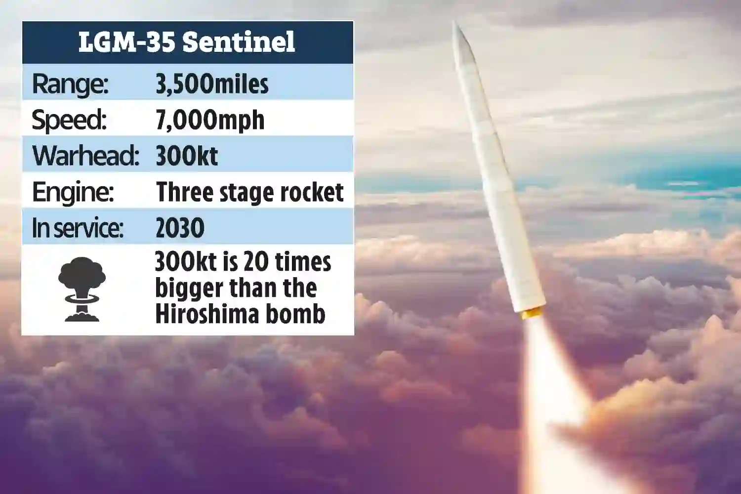 LGM-35A "哨兵 "是一种洲际弹道导弹(ICBM)系统,预计将取代美国核力量结构中的民兵 III 型(MMIII)洲际弹道导弹。自 1970 年以来,"民兵三号 "洲际弹道导弹一直是美国核三部曲--陆基洲际弹道导弹、潜射弹道导弹和核轰炸机--中的地基部分。拜登政府在其 2025 财年国防部(DOD)预算申请中为 "哨兵 "列入了 37 亿美元,并在能源部国家核安全局(NNSA)预算申请中为正在为该导弹研制的 W87-1 核弹头列入了 11 亿美元。在成本预测增加后,美国防部一直在对 "哨兵 "项目进行国会授权的审查。