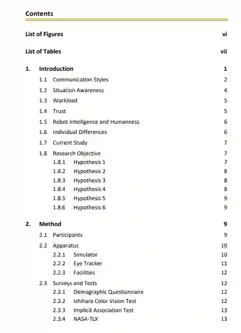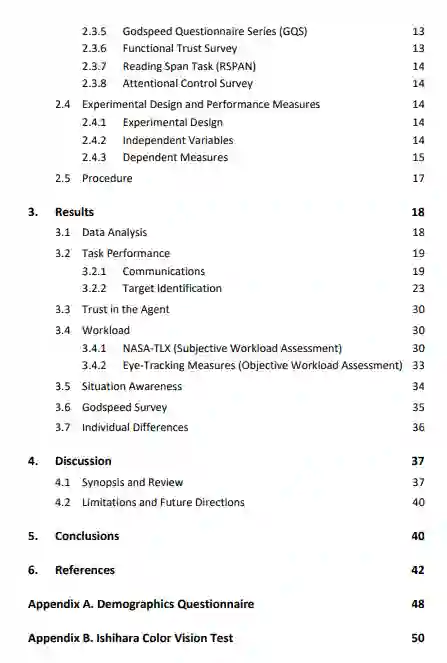 本研究的目标是了解不同的通信方式如何与任务负荷相互作用,在人与智能体的合作背景下,影响人的表现、信任、工作量、SA和对智能体的看法。