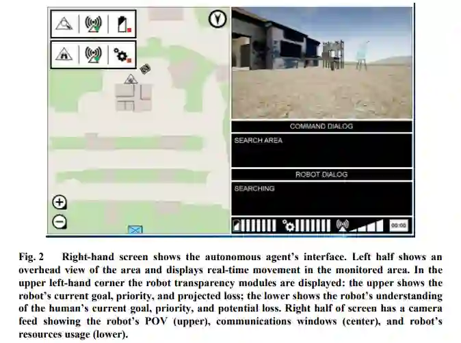在人类-智能体团队中,信息共享的方式由界面设计决定(Kilgore和Voshell 2014),其中一个方面将是团队成员的通信风格。机器人是简单地分享关于其状态和对周围环境的信念的信息(单向通信),还是团队成员有能力相互查询,更新目标和纠正错误信息(双向通信),这不是由团队决定的,而是由界面内置的能力决定的。因此,在某种程度上,人类对智能体的看法可能不是由智能体的任务表现或能力决定的,而是由团队部署前很久做出的设计决定决定的。在这项工作中,将评估通信方式对人类的任务表现、SA、感知的工作量、信任和对自主智能体的看法的影响。此外,还将评估可能影响调查结果的几个个体差异因素。