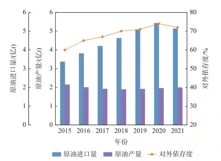 注:数据来源于中国海关总署、中国统计年鉴图1 2015年至2021年中国原油对外依存状况