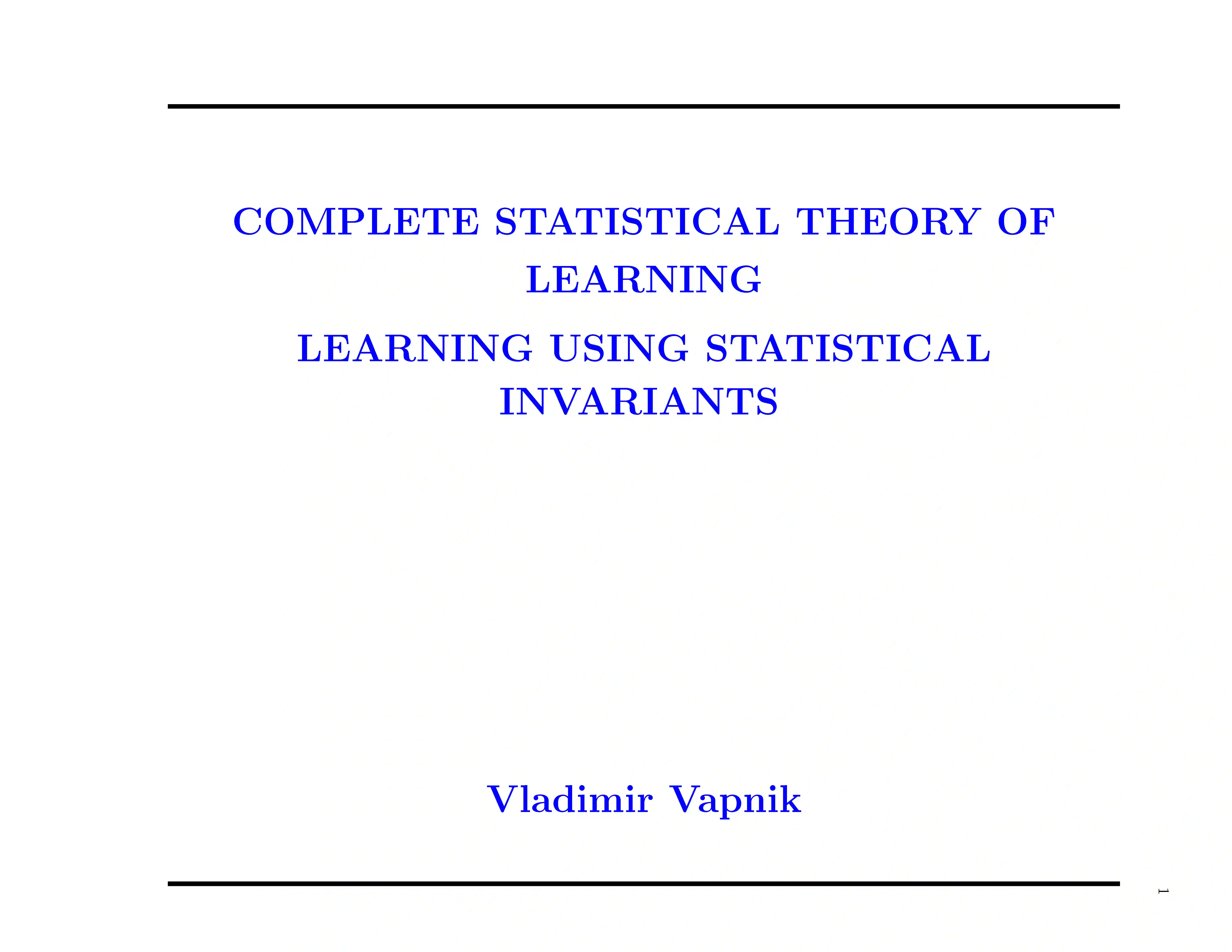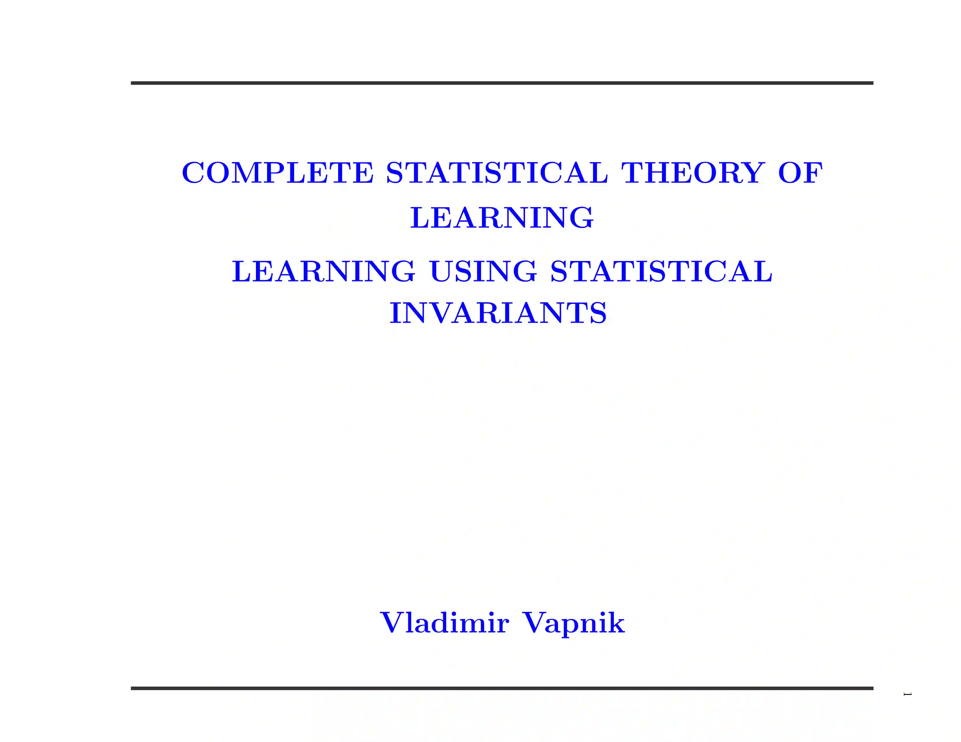 【导读】MIT开设的深度学习课程邀请了众多机器学习大拿进行报告。最近,统计学习理论之父-SVM作者Vladimir Vapnik 给了关于学习统计理论的报告《Complete Statistical Theory of Learning》,介绍了统计学习一系列的基础理论,是当下深度学习时代探究学习理论值得认真思考的部分。