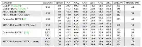 表1 基于Transformer的目标检测算法以及我们的方法(REGO)检测表现对比