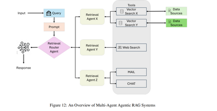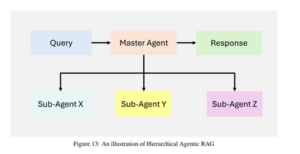 Agentic RAG系统可以根据其架构的复杂性和设计原则进行分类,主要包括单智能体架构、多智能体系统和分层智能体架构。每种架构都针对特定的挑战进行了优化,并在不同的应用中表现出色。4.1 单智能体Agentic RAG:路由器单智能体Agentic RAG系统采用集中式决策机制,由单个智能体负责检索、路由和信息的整合。这种架构简化了系统设计,特别适用于工具或数据源数量有限的场景。工作流程查询提交与评估:用户提交查询,协调智能体接收并分析查询,确定最合适的信息源。知识源选择:根据查询类型,协调智能体选择不同的检索选项,如结构化数据库、语义搜索、网络搜索或推荐系统。数据整合与LLM合成:检索到的数据传递给大型语言模型(LLM),LLM将来自多个源的信息整合成连贯且上下文相关的响应。输出生成:系统生成综合性的用户响应,并以简洁、可操作的格式呈现。关键特性与优势集中化简化:单个智能体处理所有检索和路由任务,简化了系统设计和维护。效率与资源优化:由于智能体数量较少,系统对计算资源的需求较低,能够快速处理查询。动态路由:智能体实时评估每个查询,选择最合适的知识源。跨工具的多功能性:支持多种数据源和外部API,适用于结构化和非结构化工作流。 4.2 多智能体Agentic RAG系统多智能体RAG系统通过多个专用智能体处理复杂的工作流和多样化的查询类型。每个智能体专注于特定的任务或数据源,从而提高了系统的灵活性和可扩展性。工作流程查询提交:用户查询由协调智能体接收,并根据查询需求分配给专用检索智能体。专用检索智能体**:每个智能体负责特定类型的数据源或任务,如结构化查询、语义搜索、网络搜索或推荐系统。工具访问与数据检索:每个智能体将查询路由到其领域内的适当工具或数据源,检索过程并行执行,以提高效率。数据整合与LLM合成:检索完成后,所有智能体的数据传递给LLM,LLM将信息整合成连贯的响应。输出生成:系统生成综合性的响应,并以简洁、可操作的格式呈现给用户。关键特性与优势模块化:每个智能体独立运行,允许根据系统需求无缝添加或移除智能体。可扩展性:多个智能体并行处理查询,能够高效处理高查询量。任务专业化:每个智能体针对特定类型的查询或数据源进行优化,提高了检索的准确性和相关性。效率:通过将任务分配给专用智能体,系统减少了瓶颈,提升了复杂工作流的性能。