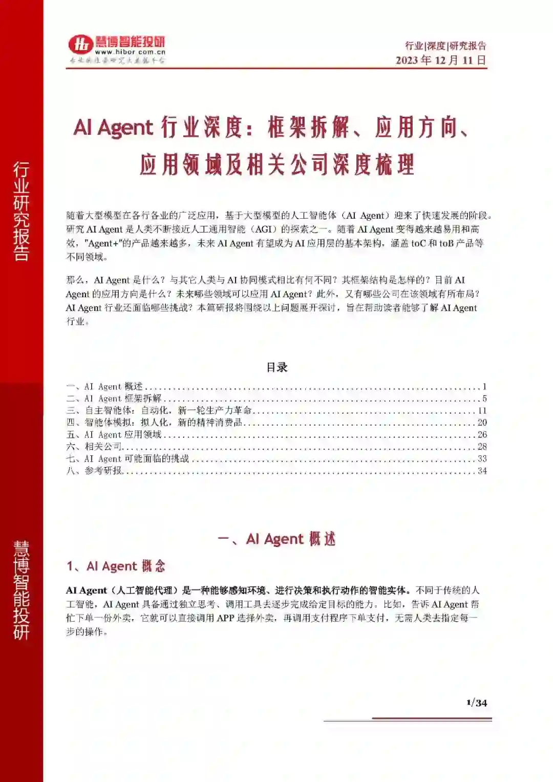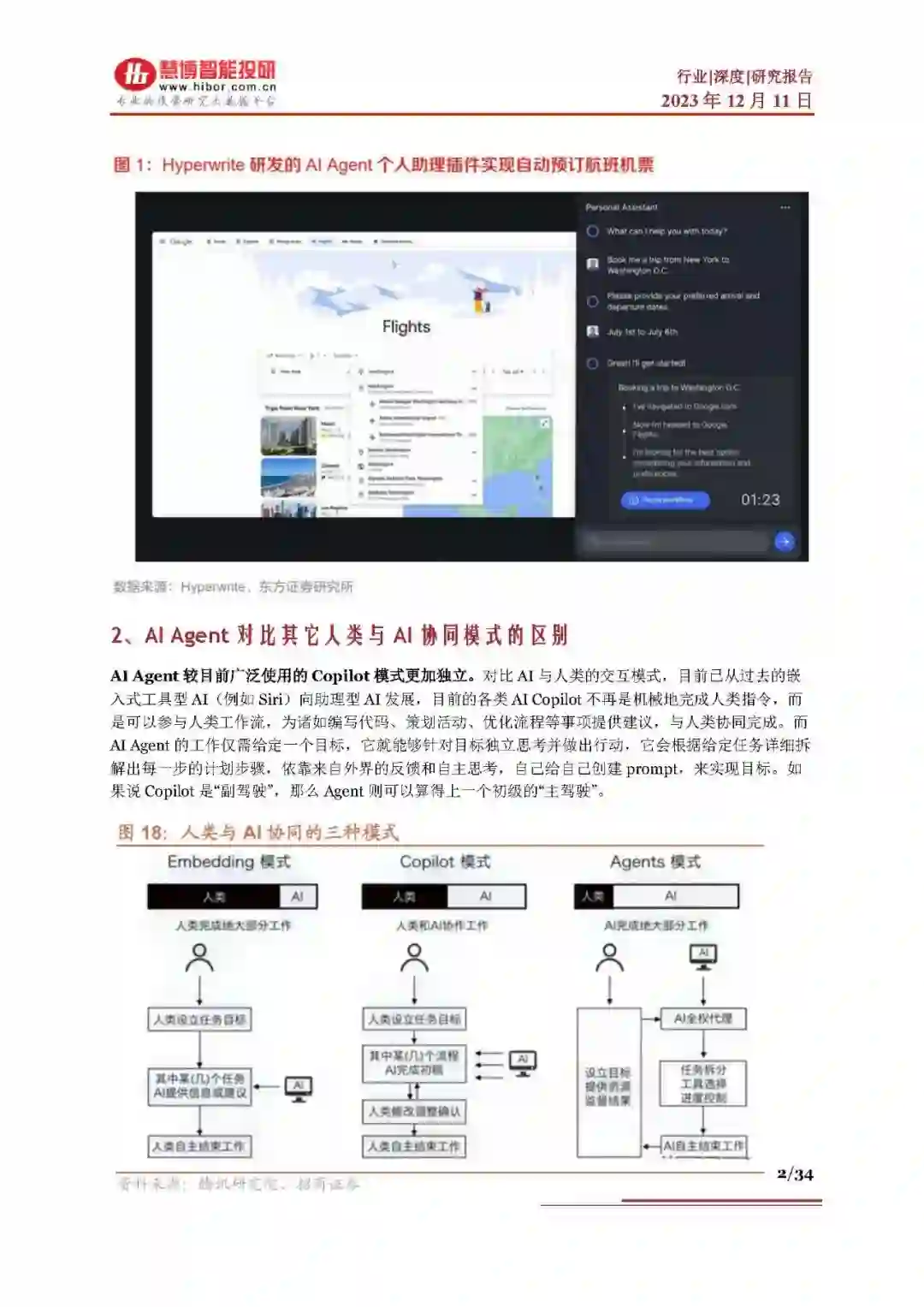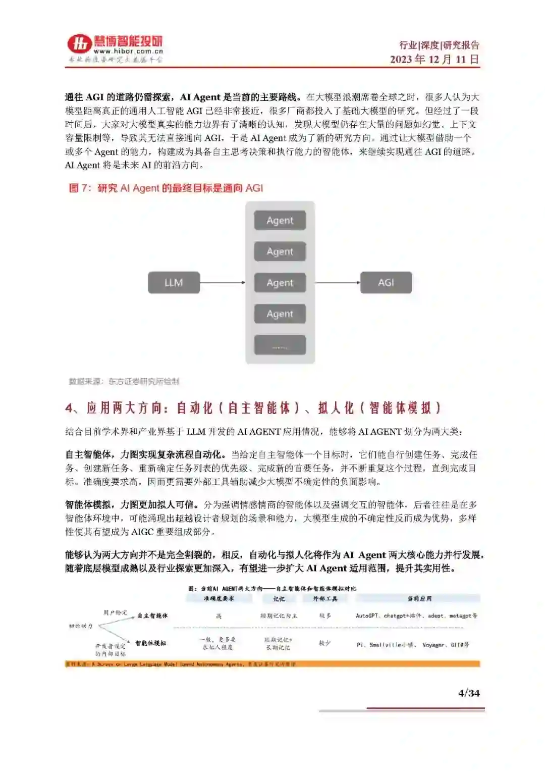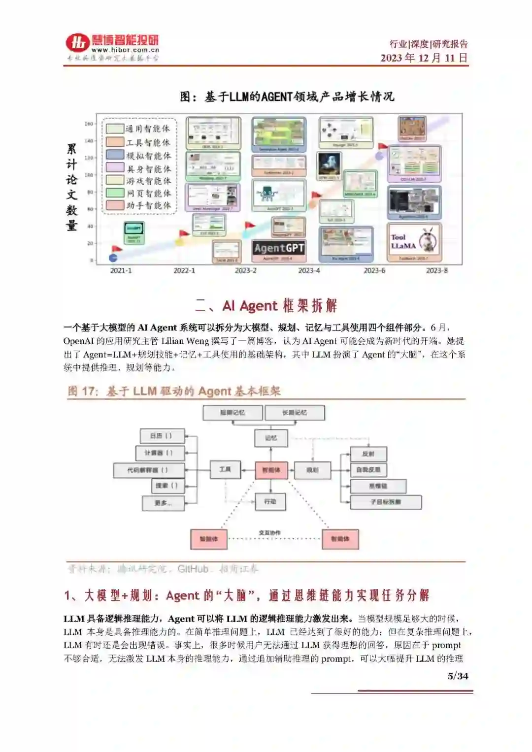 🤖 AI Agent概述:AI Agent(人工智能代理)是一种能够感知环境、进行决策和执行动作的智能实体。与其它人类与AI协同模式相比,AI Agent具有更高的独立性和自主性。 📚 AI Agent框架拆解:一个基于大模型的AI Agent系统可以拆分为大模型、规划、记忆与工具使用四个组件部分。 💡 自主智能体与智能体模拟:AI Agent的应用方向主要分为自动化(自主智能体)和拟人化(智能体模拟)两大类。 🌐 AI Agent应用领域:AI Agent有望在多个领域实现落地应用,包括toC和toB产品等。 🏢 相关公司:OpenAI、科大讯飞、昆仑万维等公司正在积极布局AI Agent领域,推动技术发展和应用落地。 💡 AI Agent面临的挑战:安全性与隐私性、伦理与责任、经济和社会就业影响等问题仍然需要关注和解决。