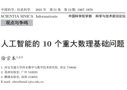 本文提出并阐述人工智能研究与应用中凾待解决的10个重大数理基础问题,包括: