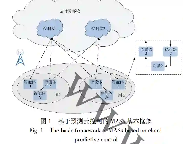 随着计算机科学技术、人工智能技术和网络控 制技术的飞速发展, 多智能体系统(multi -agent systems, MASs)引起了广泛的关注, 已应用于智能电 网[1-3]、智能交通[4]、自动驾驶[5]、传感器网络[6]等领 域, 一致性问题是 MASs 的基本问题[7-13] , 该问题旨在 通过与邻居交换信息来使所有智能体达成一致. 大 量的 MASs 通过无线网络交换信息, 不可避免地受到 噪音信号的干扰. 扰动的存在会影响系统的性能, 甚 至严重破坏系统的稳定性. 扩张状态观测器作为自 抗扰控制器的核心, 可用于同时估计状态和扰动. 然 而, 在考虑网络延迟的情况下, 如何较精确地估计系 统状态和扰动需要进一步研究. 在 MASs 中, 随着智能体结构的变化和规模的增 加, 数据的实时处理和计算的速度需要得到严格的 保障, 使用传统分析方法很难处理这样的实时大数 据和计算. 同时, 控制系统中的海量数据将增加网络 的通信负担和系统的计算负担, 一个高效的带宽分 配方案就变得尤为重要. 此外, 由于数据是通过网络 传输的, 网络时延对 MASs 的影响至关重要, 需要设 计相应的控制策略以主动补偿网络时延. 因此, 在大 规模的云控制系统中, 合理分配带宽以充分利用通 信资源非常重要, 这有助于提高效率, 减少不必要的 资源浪费;另一方面, 如何补偿 MASs 存在的网络时 延和受到的扰动也是一个关键问题. 基于以上分析, 研究了一种考虑网络时延和未 知扰动的 MASs 的带宽分配和预测云控制方案. 本文 的贡献总结如下: 1)对于具有未知扰动的 MASs, 提出了一种基于 预测的扩张状态观测器, 以估计每个智能体受到的 扰动并设计控制器进行补偿. 2)Stackelberg 博弈方法用于解决 MASs 的带宽 分配问题, 该问题包含预测云控制器之间的非合作 博弈和智能体之间的演化博弈. 3)提出了一种预测云控制方案, 以补偿受带宽 分配影响的网络时延和扰动. 并给出了保证 MASs 稳 定性和一致性的充分条件.