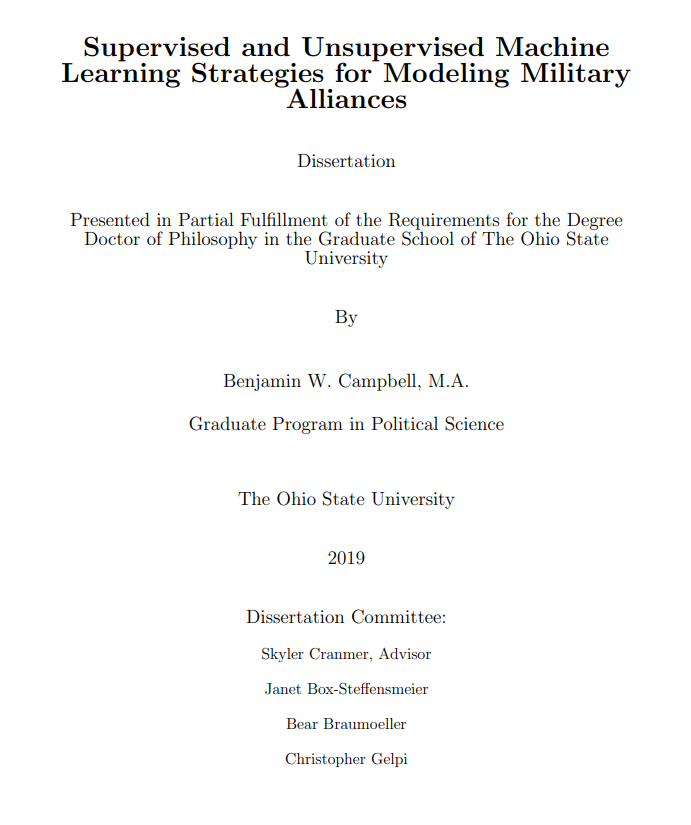 在建立国家间军事联盟模型时,学者们会做出简化假设。然而,大多数人都认识到这些经常被引用的假设过于简单。本论文利用监督和非监督机器学习的发展来评估这些假设的有效性,并研究它们如何影响对联盟政治的理解。本文发现的一系列发现有助于更好地理解联盟的原因和后果。