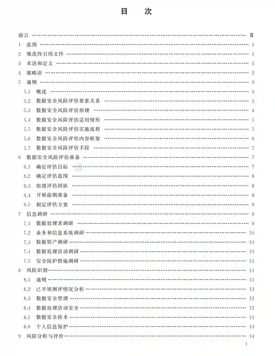 本文件描述了数据安全风险评估的基本概念、要素关系、分析原理,给出了数据安全风险评估的实 施流程、评估内容、分析评价方法等。 本文件适用于指导数据处理者、第三方评估机构开展数据安全风险评估,也可供有关主管监管部门 实施数据安全检查评估时参考。