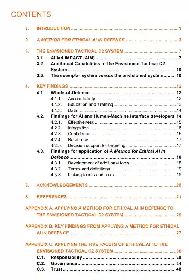 使用 "国防中的伦理人工智能方法 "对这一设想的C2系统进行分析,为三个利益相关者群体提供了关键的发现:澳国防部;人工智能技术开发者,以及那些寻求使用或迭代 "国防中的伦理人工智能方法 "的人。