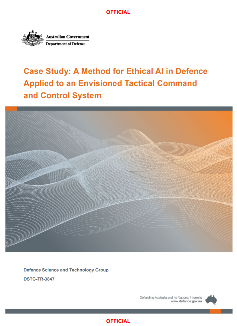 这份报告《案例研究:国防中的伦理人工智能方法应用于战术指挥和控制系统》是总理与内阁部(PM&C)、澳国防部和澳大利亚国立大学(ANU)3A研究所之间的科技(S&T)合作的产物。它使用《国防中的伦理人工智能方法》[1]来探讨设想中的人工智能战术指挥和控制(C2)系统的伦理风险,该系统整合了各种自主功能,以协助单个人类操作员同时管理多个无人驾驶车辆。