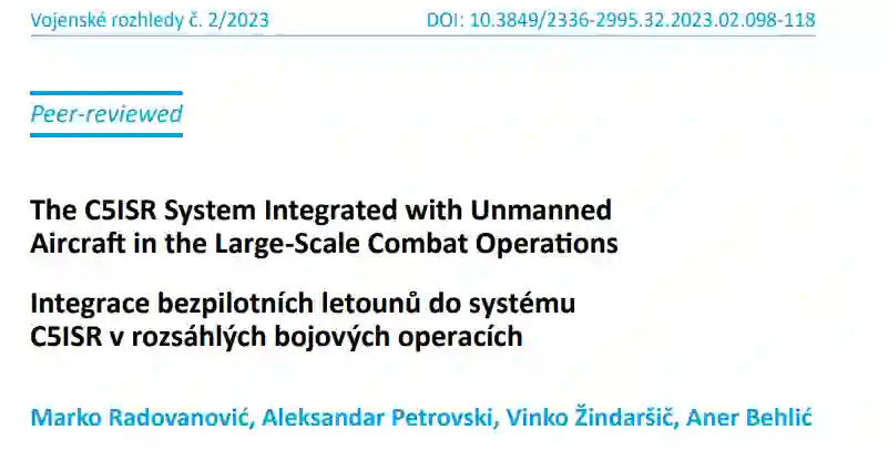 科学技术的迅猛发展,特别是第四次工业革命取得的重大成就,给社会生活领域带来了许多变化。在国防和安全领域尤其可以凸显出来,作战活动有了显著改善,科技成果的应用大大提高了单元的效率。现代作战行动需要使用最先进的作战资产来高效执行指定任务。无人驾驶飞行器的使用是现代作战行动不可或缺的一部分。由于其用途广泛,结构和作战特点各不相同,为装备这类作战装备的单元提供了广泛的可能性。通过使用集成到 C5ISR 系统中的无人驾驶飞行器,可以实时了解战场情况并提供网络保护,这为决策者在作战行动中及时有效地指挥部队提供了可能。C5ISR 是指挥、控制、计算机、通信、网络、情报、监视和侦察的缩写,是 C4ISR 的升级系统,不包含网络元素(图 1)。在现代作战行动中,使用了各种类型的无人机,从商用无人机到向指挥中心传输数据的武装作战无人机。无人飞行器在现代作战行动中的使用越来越多,特别是用于侦察、监视和瞄准地面目标。无人驾驶飞行器要想在战斗中发挥有效作用并满足现代战争的要求,必须具备某些特征。