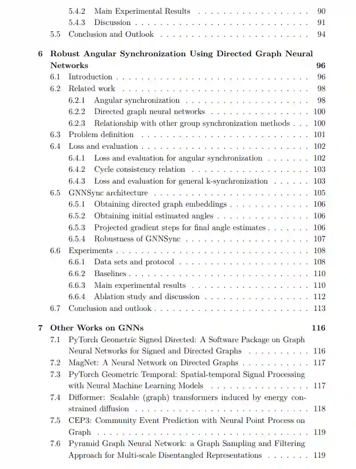 在本报告中,我们提出了两种用于带符号和有向网络中节点聚类的空间GNN方法,一种用于带符号有向网络节点聚类和链接预测的谱GNN方法,以及两种针对排序和角同步具体应用的GNN方法。这些方法在嵌入生成和预测中结合为端到端的方法,没有中间步骤。
