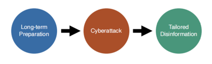 第一步:长期准备。虚假信息可以塑造政治态度,播下分裂和不信任的种子,让对手以后可以利用。外国虚假信息的传播者在社交媒体上发展了一批追随者,在事件上传播煽动性的言论,以淹没有信誉的新闻,并在有党派的网上社区获得可信度。这些行动为信息环境打下基础,塑造国内政治话语,为协调攻击做准备。网络攻击还可以收集信息,以便在这一时期制定未来的定制虚假信息活动。