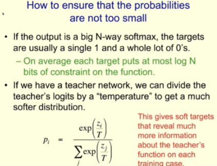 为了确保这些概率不是太小,可以「高温」运行教师,在训练学生时也以「高温」运行学生。比如说,如果采用的是 logit,那就是输入 softmax 的东西。对于教师来说,可以基于温度参数对其进行缩放,进而得到一个更 soft 的分布;然后在训练学生时使用同样的温度。