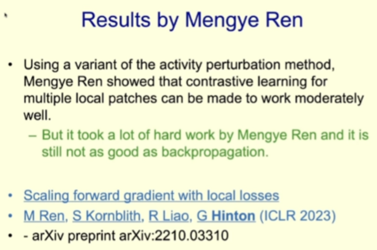 实际上这正是 Hinton 团队近些年最重要的研究成果之一,详情可参阅机器之心的报道《放弃反向传播后,Geoffrey Hinton 参与的前向梯度学习重磅研究来了》。