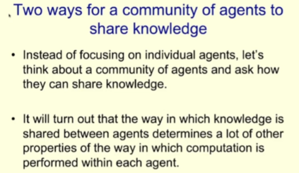 当多个智能体构成的社群互相共享知识时,共享知识的方式能在很大程度上决定计算执行的方式。