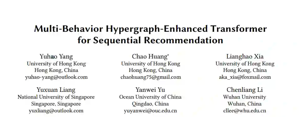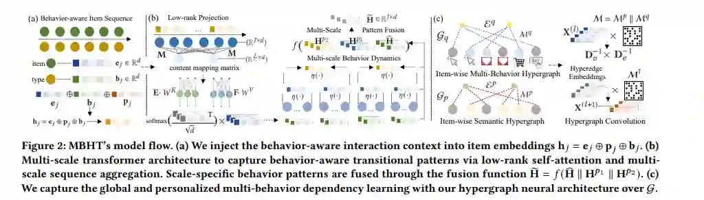 学习动态用户偏好已经成为许多在线平台(如视频分享网站、电子商务系统)进行序列推荐的一个越来越重要的组成部分。以前的工作已经做出了许多努力,基于各种架构,如循环神经网络和自注意力机制,在用户交互序列上建模物品-物品的转换。最近出现的图神经网络也可以作为有用的骨干模型来捕获序列推荐场景中的条目依赖关系。尽管它们很有效,但现有的方法一直专注于具有单一交互类型的商品序列表示,因此局限于捕捉用户和商品之间的动态异构关系结构(例如,页面视图、添加到收藏、购买)。为了应对这一挑战,我们设计了一个多行为超图增强的Transformer框架(MBHT),以捕获短期和长期的跨类型行为依赖关系。具体地说,一个多尺度的Transformer配备了低级别的自注意力,以便从细粒度和粗粒度级别联合编码行为感知的序列模式。此外,我们将全局多行为依赖关系纳入超图神经体系结构,以自定义的方式捕获分层的长期项目相关性。实验结果表明,在不同的设置下,我们的MBHT优于各种最先进的推荐解决方案。进一步的消融研究验证了我们模型设计的有效性和新的MBHT框架的好处。我们的实现代码发布在:https://github.com/yuh-yang/MBHT-KDD22。