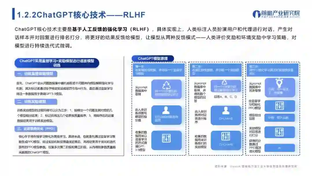 其中,中国在AIGC发展中的挑战,算法/算力是关键。产业链上游(基础层)制约着AIGC产业发展,其中数据、算法、算力是AI领域发展的核心三要素,从全球对比来看,中国在数据方面增速较好,但在算法、算力方面与海外具有较大差距,较大程度上限制了中国AIGC产业发展。 针对中国在AIGC面临的发展挑战,前瞻产业研究院建议可以通过加强人才培养、加强投资、促进产学研结合、加强知识产权保护、以及加强国际合作等方面来推动中国AIGC产业发展。 以上内容来源《ChatGPT开启AIGC产业生态新时代》报告节选,关注前瞻产业研究院微信公众号,搜索报告名,可下载完整版报告。 前瞻产业研究院是一家专注为各细分行业做深入研究的智库机构,设立了32个细分市场调研事业部,持续研究超6600+细分领域,出品了上万份行研精品报告,发布了近百份行业白皮书。数十年来,前瞻产业研究院以严谨细致的工作作风和高度专业的职业素养,赢得了客户的广泛认同,服务了2200+政府客户、24万+企业客户,成为中国产业研究咨询的领导品牌。 未来,前瞻产业研究院将持续深入对AIGC以及人工智能领域的研究,期望为推动中国AIGC以及人工智能产业发展贡献一份力量,也为行业从业者及参与者提供更多的真知和远见。