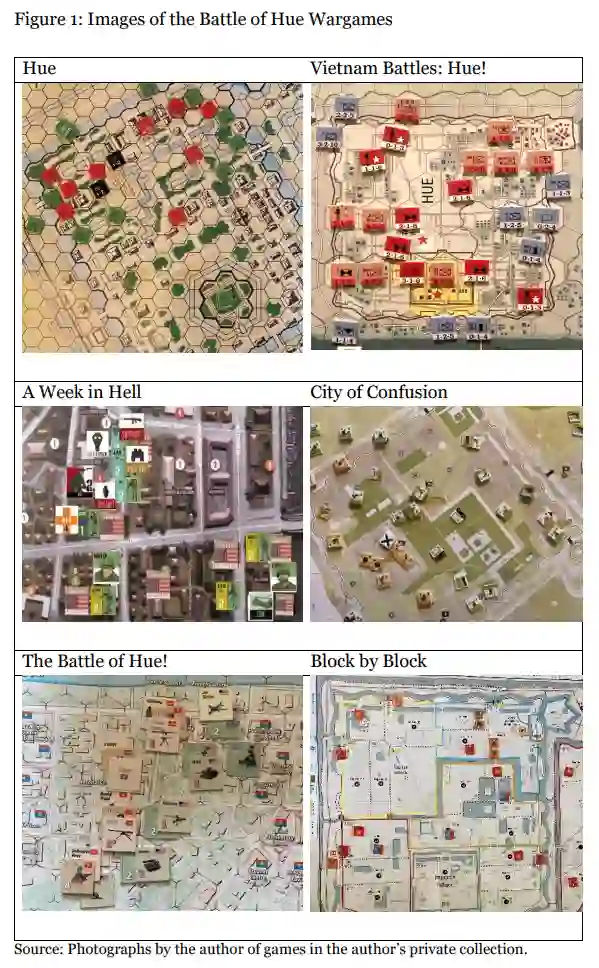 最后,顺化战役是一场胜利的战役,但也是一场失败的战争。对 USECT 模型的考虑以及对信息和认知领域的扩展,开始将战役(和兵棋推演)置于更广泛的作战、战略甚至文化背景中。虽然僵化的兵棋推演有助于了解战术层面的细节,也可能是大战术层面的细节,但对更大范围的考察可能需要不同的兵棋推演技术。嵌套游戏的概念可能是一种有用的方法。顺化战役!"可以让玩家了解美国海军陆战队在清理三角地带时遇到的问题和艰苦卓绝的行动,而 "混乱之城 "则有助于将其置于整个城市的大背景下。在此之上,不那么死板的兵棋推演方式,如矩阵游戏,可以更好地探讨作战和政治问题。