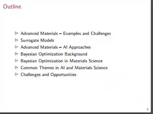 先进的材料和制造方法是当今经济的重要推动力。通过使廉价的可靠产品批量生产和工业应用达到前所未有的规模,他们使电视和计算机等消费类设备无处不在。在高性能环境中,例如在用于计算机和蜂窝技术,光伏和消费电子的光电子学中,以及在太空和航空应用中的极端环境中,都需要新材料。但是,设计新材料是一个缓慢而费力的过程,需要大量的资本和劳动力投资。材料的合成,开发和表征是耗时且昂贵的过程。特别是必须评估和优化大量不同的替代方案。通常,理论模型的指导很少,并且仅能在小规模范围内合成要测试的新材料。 虽然几十年来一直使用基于少量经验观察的模型来加快这一过程,但AI和机器学习的最新进展已经进入了一个有效,高效的建模和探索具有复杂性能的可能设计大空间的新时代。机器学习诱导的过程模型允许近似复杂的关系预测假设材料的属性。本教程将提供该应用领域的介绍和概述,并重点介绍人工智能研究的挑战和机遇。