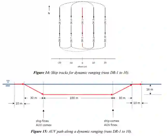 将便携式自主水下航行器(AUV)作为矢量磁力计的搭载平台具备快速部署优势。该能力可在作战区域部署,根据作战相关的局部磁场环境对舰船磁场特征进行实时测量。本项目旨在论证基于AUV的舰船磁力测距技术可行性。本科学报告分析了两项试验采集的磁力数据:试验分别采用静态与动态两种AUV模式。鉴于测量数据集仅包含舰船有限次通过AUV的航次数据,通过等效磁源技术将数据拟合至舰船合成模型。经深度与航向校正的预估舰船磁场特征,被绘制在与固定站点消磁作业同规格的标准网格上。为验证AUV生成磁场特征的可靠性,特将其与固定站点测量结果进行对比。误差值处于可接受范围,故试验证实了便携式AUV作为矢量磁力计搭载平台的潜力,但仍需后续技术改进。