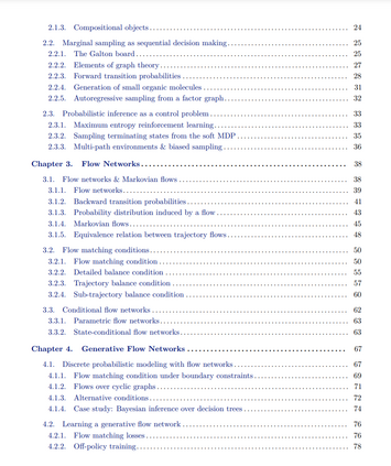GFlowNet将生成过程视为一个顺序决策问题,通过逐步构建样本来生成数据。这些模型通过在网络中强制执行某些流量的守恒,来描述通过一个归一化常数定义的分布。我们将重点介绍它们如何根植于机器学习和统计学的各个领域,包括变分推断和强化学习,并讨论它们在一般空间中的扩展。 在本论文的第二部分,我们展示了如何利用GFlowNet来近似给定数据的贝叶斯网络的DAG结构的后验分布。